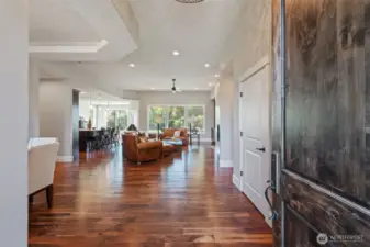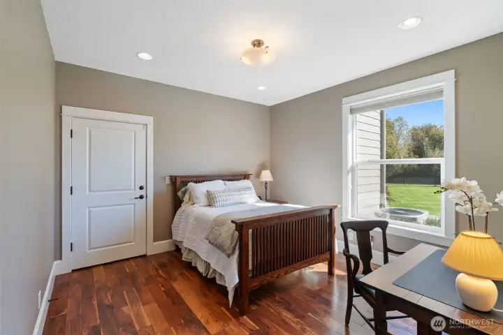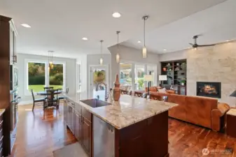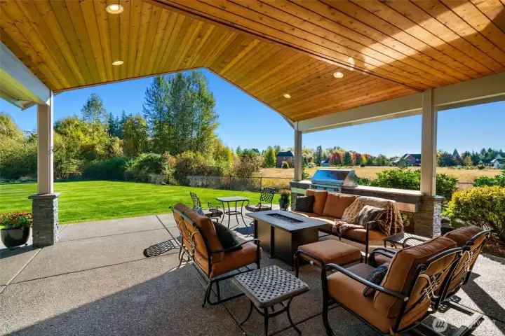 Gated community, single level home on 2.43 Acres in Battle Ground. Craftsman home with lots of natural light, 3 bedrooms, office, 2.5 baths and a luxurious primary suite with spa-like bath, soaking tub, walk-in shower, dual sinks and a walk-in closet. The open-concept great room features expansive windows, a cozy fireplace, and seamless flow to the gourmet kitchen, complete with high-end appliances, double ovens, large island, and walk-in pantry. Outside features a built-in BBQ and large covered patio for all year long entertaining! Enjoy beautifully landscaped grounds offering privacy and room to expand. The oversized garage, RV/shop bays provide ample storage for vehicles, tools, and toys. Located just minutes from downtown Battle Ground.