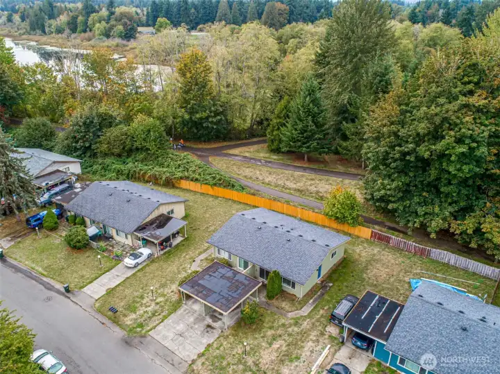 Fantastic investment or owner-occupant opportunity in the heart of Lacey! Well-maintained duplex backing to the Western Chehalis Trail and Chambers Lake Park. Each 2BD/1BA unit features modern updates including luxury vinyl plank flooring, white cabinets, and refreshed bathrooms. Each side includes a carport plus additional driveway parking. One unit rented at $1,595/month and the other vacant—ideal for immediate income or live-in potential. Quiet dead-end street close to shopping, dining, bus line, and easy I-5 access. Don’t miss this move-in ready duplex in a prime location!
