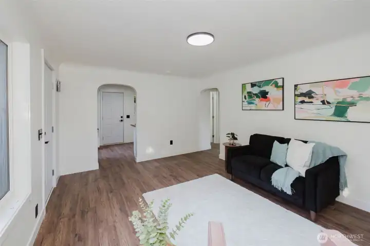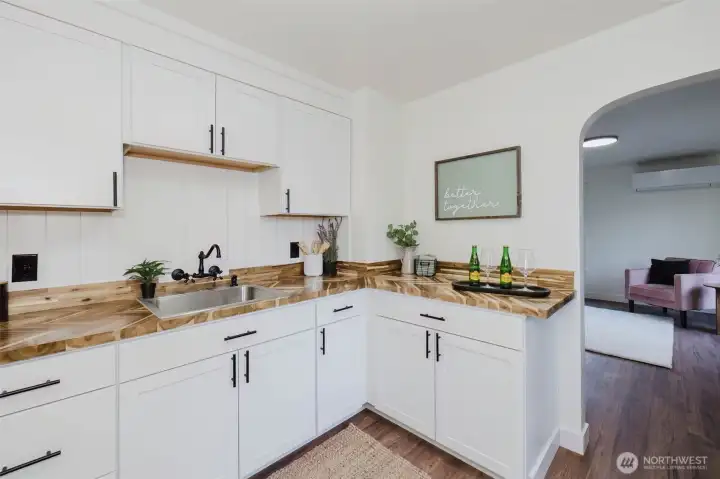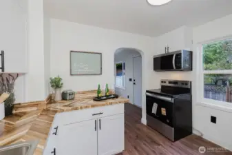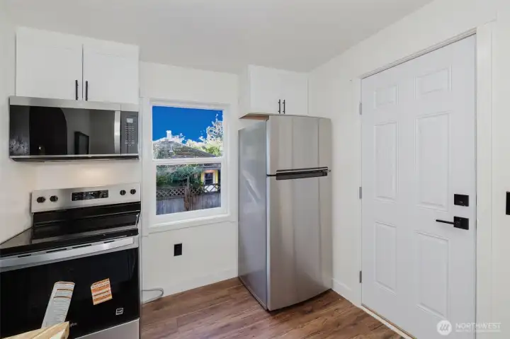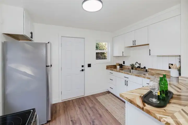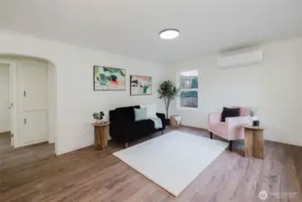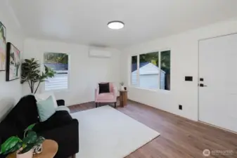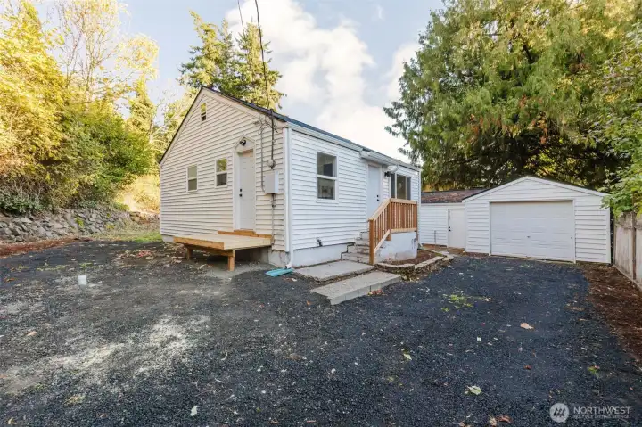 Beautifully remodeled 2-bedroom, 1-bath home in Bremerton! The bright living room is filled with natural light, and new flooring throughout adds a fresh, modern touch. Enjoy a charming kitchen with new appliances and split units for efficient heating and cooling. Located at the end of a quiet dead-end street, this home offers a detached garage with extra storage or workshop space, plus a large backyard with room to garden or relax. Conveniently close to PSNS, shopping, and transit.