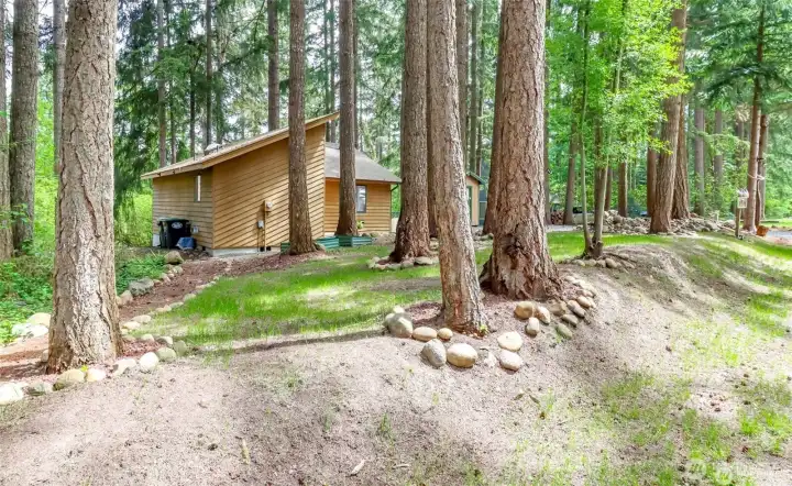 Welcome Home! This Adorable, Move-In Ready Home is on a Large Lot (On Almost a Quarter of an Acre!). Beautiful, Wooded Lot in the Highly Desirable, Gated Community of Clearwood with SO MANY AMENITIES - Access to 3 Lakes, Boat Ramps, Docks/Swimming Area, BBQ Facilities, Seasonal Swimming Pool, Tennis Courts, Basketball Courts & Miles of Trails to Explore. This Home's Open Concept Living Rm & Kitchen with Vaulted Ceilings, Hard Surface Flooring Throughout. Spacious newer full Bathroom, Deck Overlooking the Gorgeous Property & Finished Basement/Bonus Rm/Potential Add’l Bdrm is Waiting for YOU. Fire Pit & Wood Shed. Close Access to Town of Yelm with Shops, Eats, Shopping & Access to I-5/JBLM. Don’t Miss this Little Treasure in the Woods!