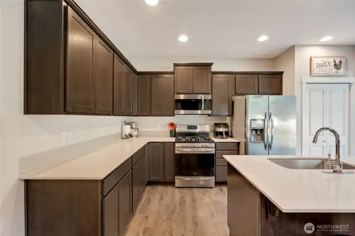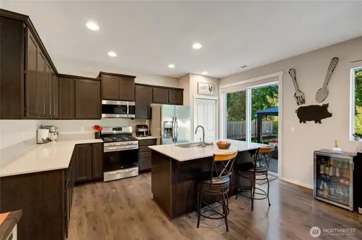 Beautifully maintained home with thoughtful updates throughout! Features include a bedroom on the main level, a tankless hot water heater, and a furnace that’s been regularly maintained. Enjoy a smart home wired for a security system, custom blinds, and stainless steel appliances adding comfort and style. Both front and back yards are professionally landscaped, with a fenced backyard for privacy and security. The extended XL patio backs to a peaceful greenbelt, and the home includes a 3-car garage — perfect for entertaining, relaxing, and storage. Welcome home!