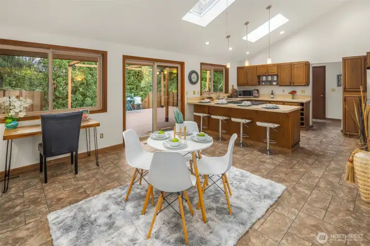 Beautifully maintained 3-bed, 2-bath rambler in Renton’s sought-after Talbot Hill neighborhood! This 1820 sqft home offers vaulted ceilings, a sunken living room with a brick fireplace, and skylights that fill the space with natural light. A separate dining room off the living room provides a perfect spot for gatherings, while the kitchen opens to a casual dining area and sliding doors leading to a deck and multi-tiered backyard—wired for a hot tub. The spacious primary suite includes an en-suite bath, and two large bedrooms offer flexibility for guests or office space. With A/C, an oversized 2-car garage, EV charger, and a prime location near parks, schools, and shopping—this offers comfort and convenience in one perfect package!