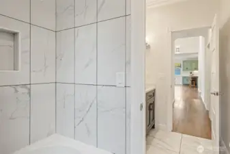 Beautifully crafted custom single level home featuring an open-concept design and vaulted great room w/acoustic insulation for peaceful living. Chef’s kitchen impresses w/custom cabinetry, quartz countertops, high-end lighting, prep island, & walk-in pantry. Thoughtful details include solid wood doors, elegant crown molding, and smart climate control with central A/C and heat pump. Relax in the spa-inspired primary bath with double sinks, walk-in shower, and soaking tub. Enjoy covered front and back porches for year-round outdoor dining and entertaining. Fully fenced backyard, w/chicken house & garden space. Community includes private beach, dock, park & clubhouse. —All this & just minutes to ferries & downtown. This home is sure to please!
