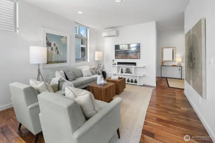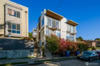 Tucked on a quiet, tree-lined street, this 3BD/2.5BA townhome offers sunny SW exposure with Sound, city, and mountain views. Enjoy watching cruise ships sail in from your bright, open kitchen with chef-inspired appliances, flowing seamlessly to the living room and patio for indoor–outdoor living. The rooftop deck is perfect for BBQs and sunsets. The window-wrapped primary suite with ensuite bath and den occupies the top floor, while two lower-level bedrooms provide flexibility for guests, office, or gym. Abundant street parking and quick access to Whole Foods, Interbay Golf, Queen Anne, Ballard, and downtown. A must see!