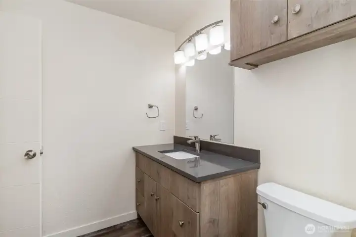 Investors! Immediate income with this fabulously updated condo that is conveniently close to everything! Complete interior remodel in 2021 with vinyl plank floor, quartz counters, new appliances, extra cabinets in kitchen and bath, paint, updated fireplace, carpet in bedrooms, doors & trim. All appliances included. Spacious deck w/locked storage cabinet; community lawn area. Located just steps from the Cross Kirkland Corridor Trail and less than 1 mile to Kirkland's waterfront with shops and restaurants in between. Less than 1 mile to Google/Facebook/ Microsoft. New roof in 2024, low HOA dues! Investors and new home owners- property is subject to tenant rights, lease expires April 2026. Photos were taken before current tenant occupied.