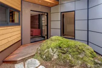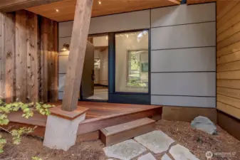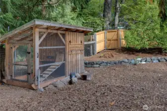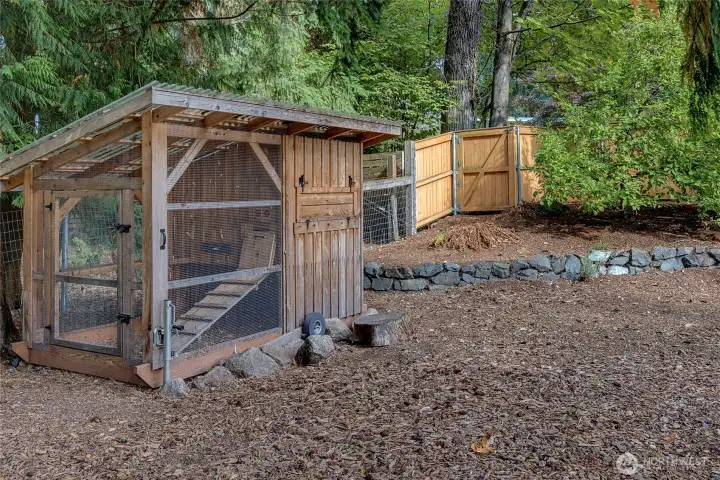 As if born from the trees & stones around it, this custom home is wrapped in natural elements. Living room has built-in bookcases & hardwood floors. Encased in wood & light, the dining room is sunken & spacious. Just past the wood stove is the kitchen w/ Cambria counters, generous cabinets & a pot-filler for the range. Beyond the kitchen is walk-in pantry w/ prep sink, additional fridge & coffee station. Barn door in pantry opens to 3/4 bath. The primary suite has an integrated closet, bay window w/ seating & serene views of the backyard. Full bathroom also serves 2nd bed w/ built-ins. Lofted room over garage could be bed, office, play or craft room. Too many features to list, including greenhouse, garden shed, chicken coop & room for DADU?