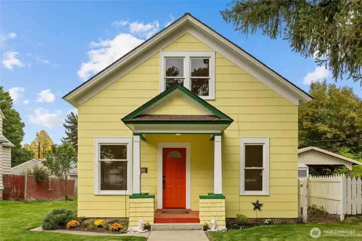 Welcome to this 1910 gem. This 3-bedroom, 1,511 sq ft and greets you with a delightful soft yellow exterior highlighted by a vibrant orange door. The layout includes bright, airy living room ideal for entertaining, and a versatile detached office that caters to all your work-from-home needs. The modern kitchen is equipped with updated appliances while retaining its historic character. Step outside to a scenic outdoor sanctuary featuring a lush lawn enveloped by mature trees, offering a serene retreat for leisure and gatherings. Located just moments from downtown Ellensburg and Central Washington University (CWU), you are surrounded by vibrant energy and community spirit. Don’t miss the chance to make this charming historic home your own.
