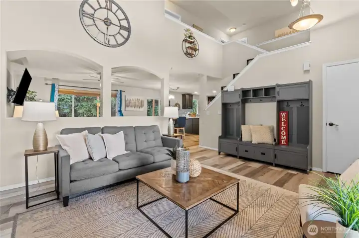 Gorgeous updated home in the quiet treelined community of Crofton Hills. Soaring vaulted ceilings, an open floorplan that offers plenty of room for entertaining. New flooring throughout, updated kitchen with new countertops, tile, custom sink and more. Don't forget the adorable little bar set up. Updated laundry room and custom paint throughout. Upstairs, you'll find 3 generously sized bedrooms and a large primary bedroom with TWO walk in closets. The home brings in so much natural light and the backyard was designed to maximize space. Large back deck, several raised garden beds, shed and more. Tucked back from the road, this rare additional off street parking. Walking distance to shopping. Ask about preferred lender credit!