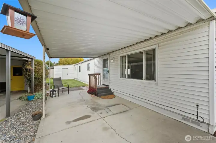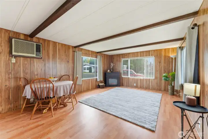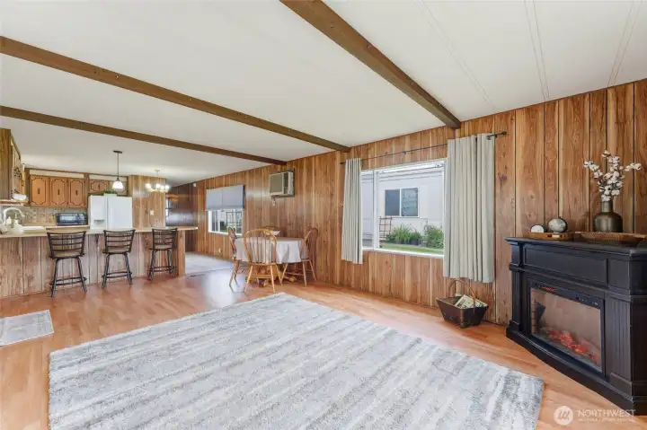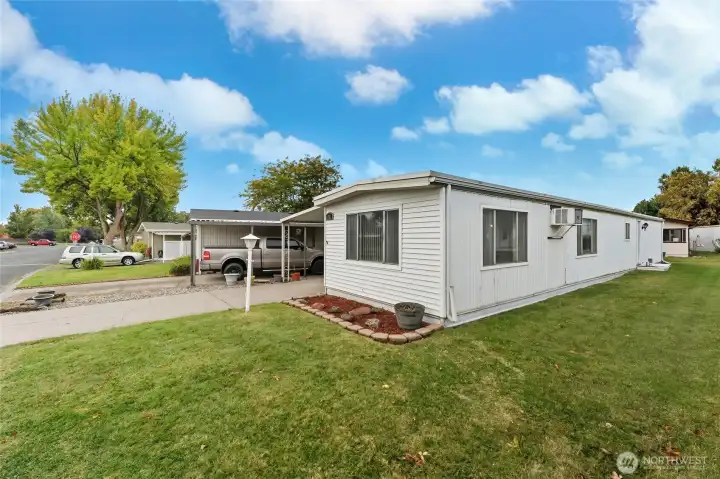 Take a look at this bright & welcoming manufactured home in a desirable 55+ community. Enjoy easy living w/ laminate & vinyl flooring in main areas & an open kitchen featuring bar seating that flows into the living area - perfect for entertaining. Both bedrooms offer built-in desks for added function & flexibility, while the spacious bathroom provides plenty of room for comfort & convenience. All kitchen & laundry appliances included. Outside boasts covered parking & a storage shed offers extra space for tools or hobbies. A great opportunity for low-maintenance living in a friendly, well-kept park w/ a community center & pool. Welcome home!