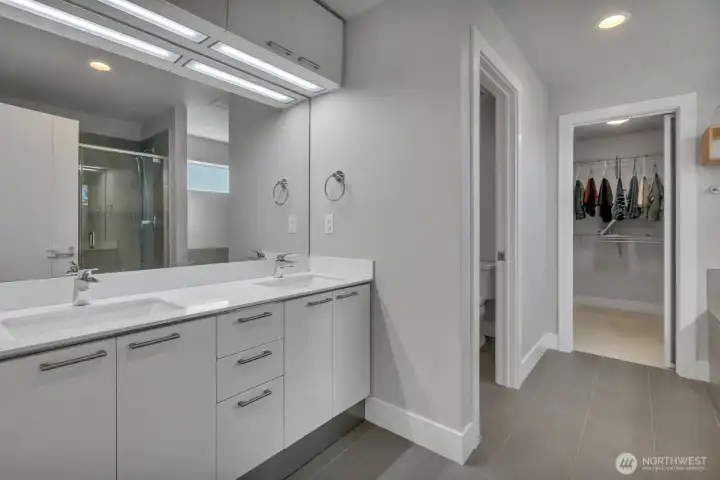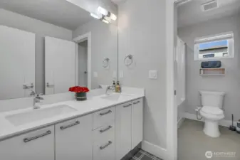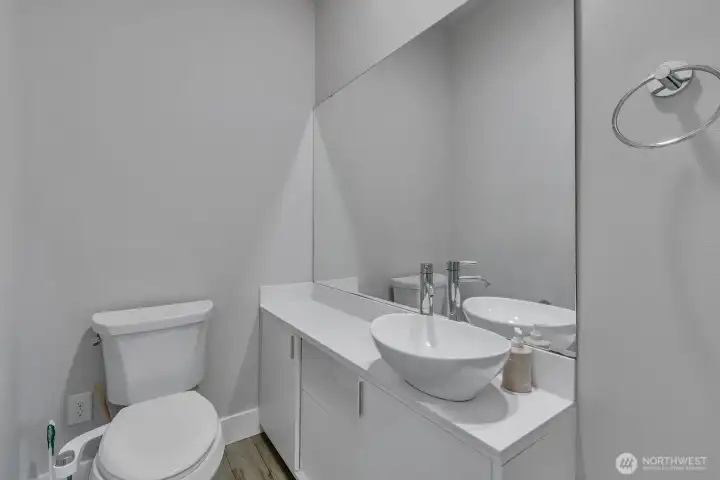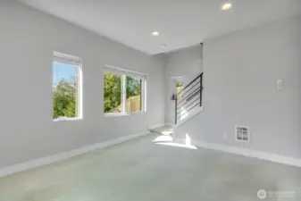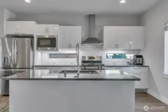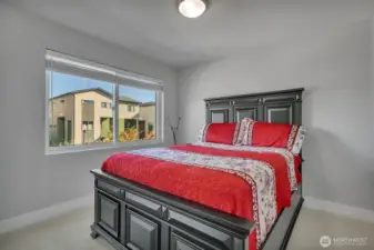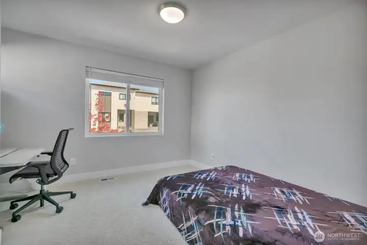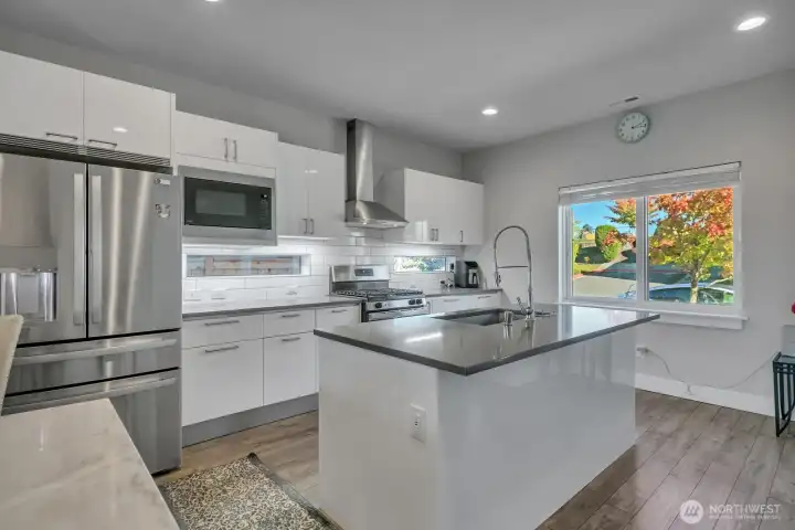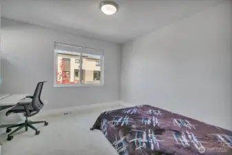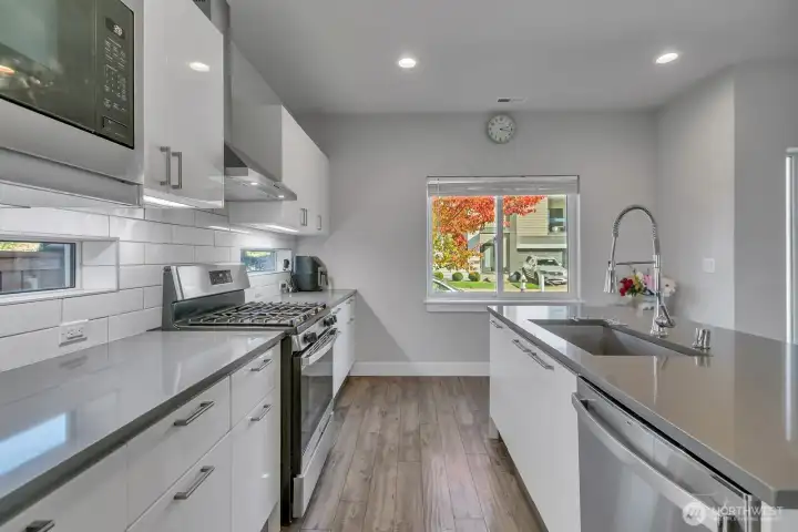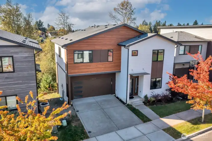 Modern 3-story home built in 2020 with quality Ichijo features throughout—dual sliding windows/closet doors, LED smart lighting, Nest thermostat & more! Bright open-concept main floor with quartz kitchen counters, soft-close cabinets, and all appliances included. Dining area opens to cozy living room with gas fireplace and large covered patio—perfect for entertaining. Upstairs has 4 bedrooms, laundry, and a spacious loft with built-ins. Primary suite features a 5-piece bath and walk-in closet. Bonus room and ¾ bath on lower level offer MIL potential. Backs to greenbelt for added privacy.