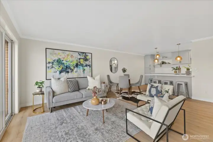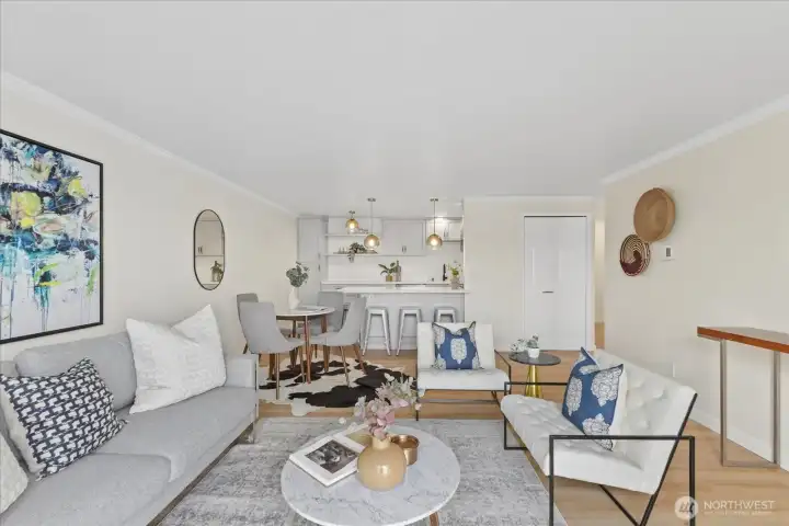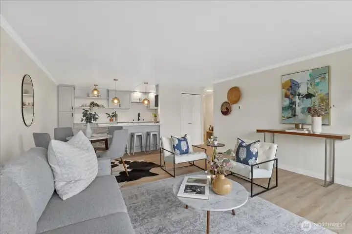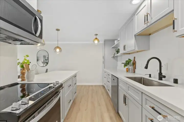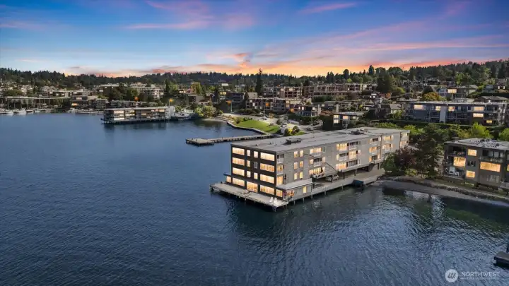 Wake up to Lake WA’s gentle waters outside your window! Soak in the breathtaking & unobstructed lake & park views from this stylishly remodeled 1 bed/1 bath condo. Brand-new kitchen, appliances, quartz counters w/ tons of storage. Large almost 800sf one bdrm end unit (with no one below), offering assigned covered parking & in-unit washer and dryer. Sunbathe or launch a kayak right from the community dock & enjoy day moorage. Waterfront living at its best and steps to Kirkland’s vibrant downtown—shops, dining, galleries—easy access to 405/520, Bellevue, Seattle and Redmond. Well managed HOA w/ no rental cap. Rare north facing unit next to David Brinks park–protected views & gorgeous sunsets! Call agent for private showing! Pre-inspected.