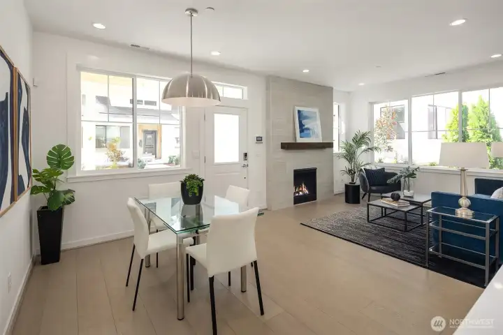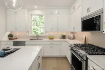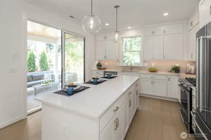 Set on a corner, this home is surrounded with natural beauty in a secluded area of the community. Canopy Cottages from Toll Brothers. The beautiful foyer welcomes you home with stunning views of the main living space and the wooded green space behind. The open-concept great room with gas fireplace is the perfect atmosphere for entertaining, with connectivity to the dining area and views of the outdoor living space. The open kitchen features toffee-stained shaker-style cabinets with golden champagne cabinet hardware, white picket tiled backsplash, and quartz countertops. KitchenAid appliances include a French door refrigerator and a gas range. Lovely upgraded features throughout. Minutes to downtown Kirkland and Totem Lake shopping!