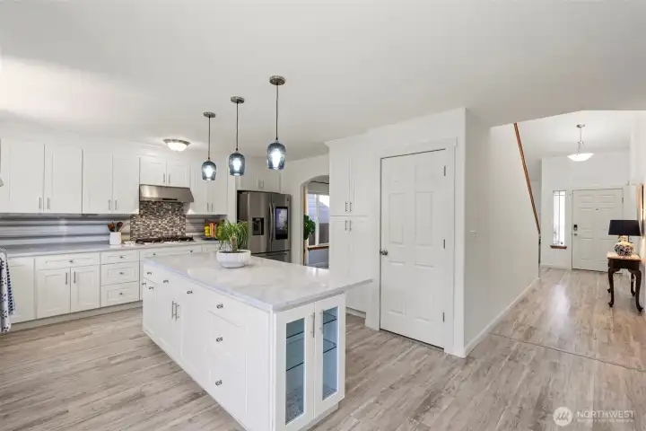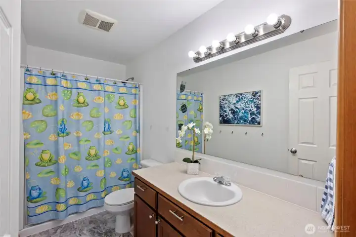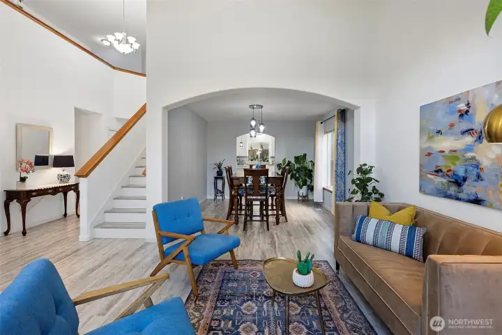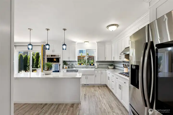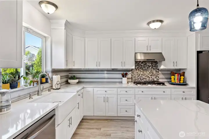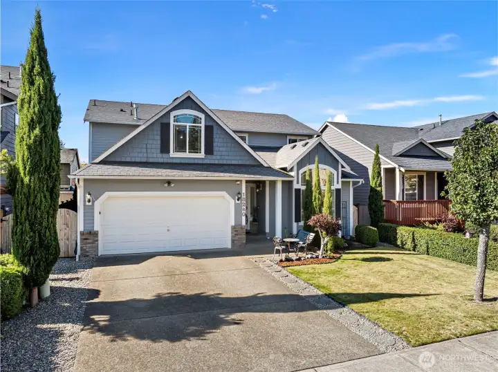 Come home to this beautifully laid-out Frederickson Estates charmer. Arches and vaulted ceilings greet you in the entry and living/dining rooms. The upscale and updated kitchen is a stunner, from the apron-front sink to the quartz countertops, and with room at the island for every culinary need. The kitchen flows through to a comfortable family room with gas fireplace. Upstairs the primary suite enjoys an en suite bath and walk-in closet. Three additional bedrooms and a full bath ensure room for everyone. A spacious upstairs landing and bonus room provide ample options for work-from-home or entertainment. Don't miss the fully-fenced back patio. As call chill sets in, remember summers get hot, and you'll love our AC! Come see yourself here.