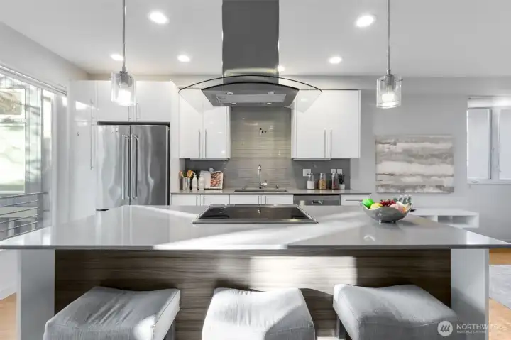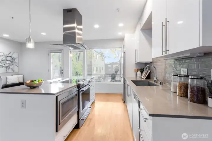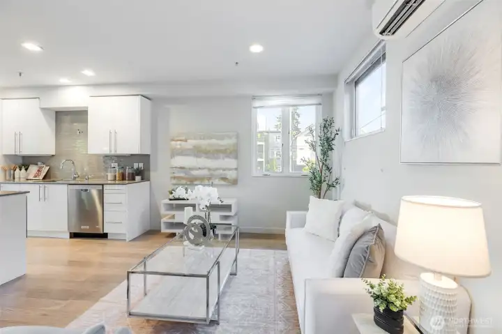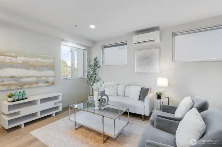 Experience the best of city living in this stylish Ballard townhome featuring a RARE secured underground garage! Perfectly located with a Walk Score of 95, you’re just moments from top restaurants, trendy boutiques, vibrant nightlife, and convenient public transportation. Step inside to discover high-end designer finishes, a modern kitchen with custom cabinetry, quartz countertops, new washer/dryer and striking tile details. Floor-to-ceiling windows and skylights fill the home with natural light, while energy-efficient mini splits providing heating and A/C ensure year-round comfort. Unwind on your private rooftop deck and take in the sweeping city views your perfect urban retreat!