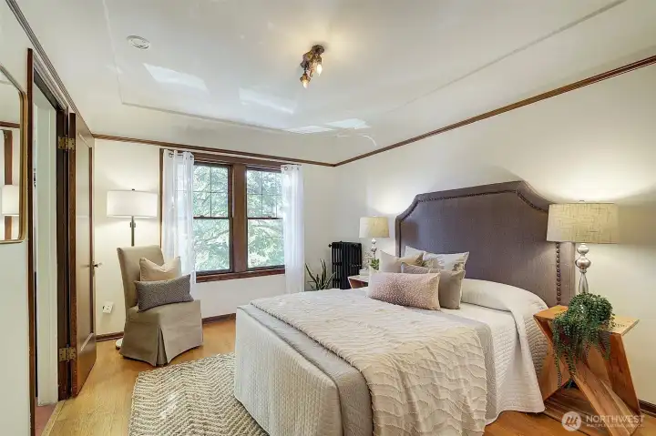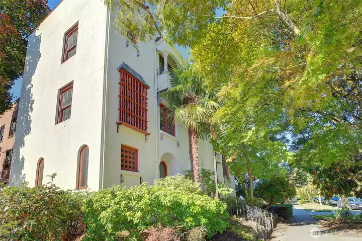 One of Seattle’s remaining Historic Spanish style bldings. This huge 920 sq ft corner top floor 1 bedroom home was built in 1929. Home boasts of many of its originals including stunning leaded glass windows, gorgeous light fixtures, hardwood floors, coved ceilings, beautiful mahogany door & trim, sweet Juliet balcony and corner electric fireplace for ambience. All w/ABSOLUTE CHARM throughout. Formal entry, spacious liv/din rms, 4 oversized closets, eating nook, updated appliances & W/D in unit. HOA covers W/S/G/radiate heat. Walk score 95. Near transit & light rail. Surrounded by everything necessary for all your comfort needs.