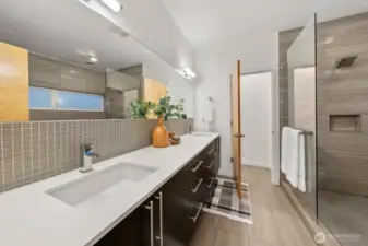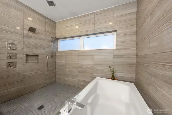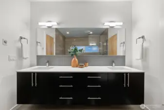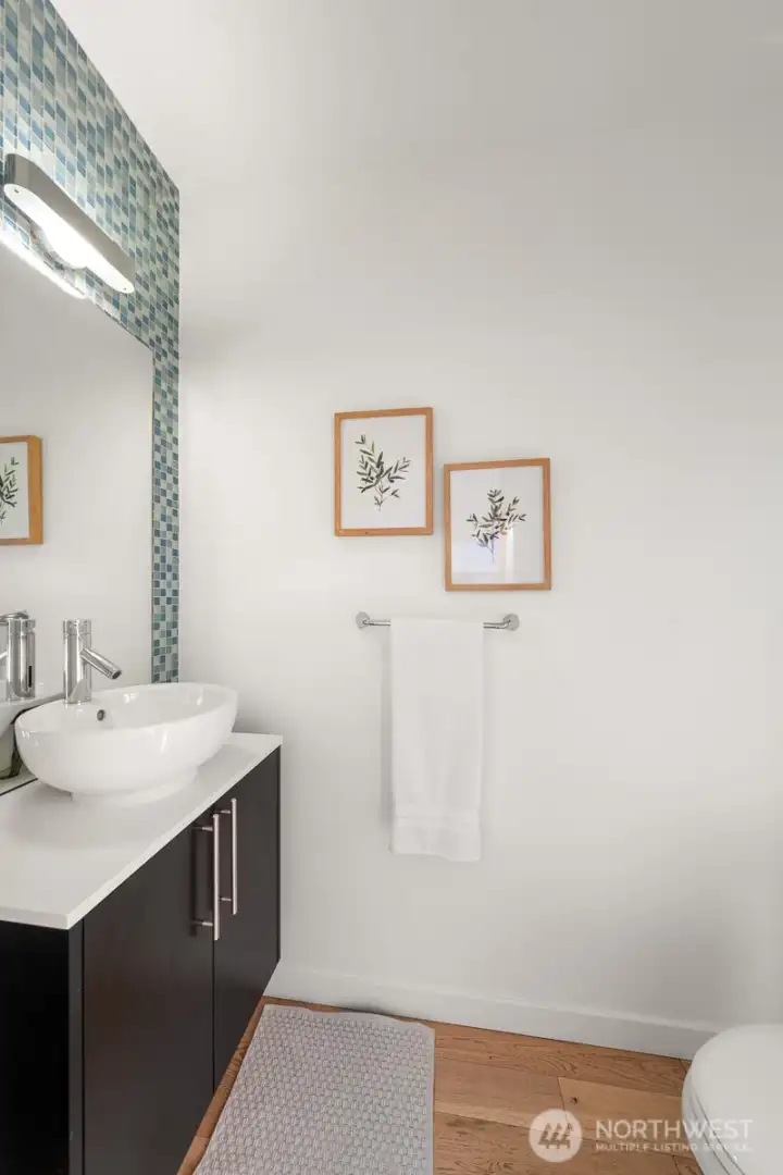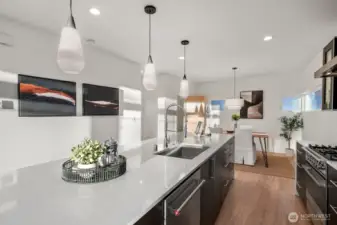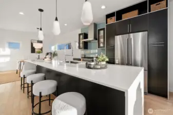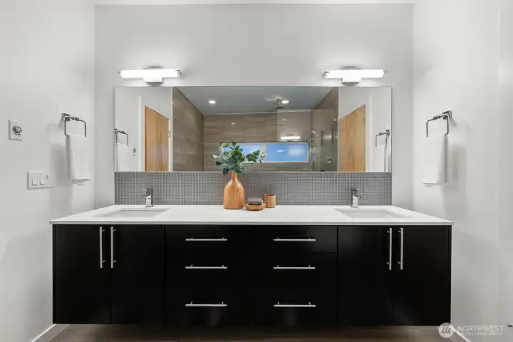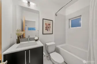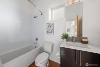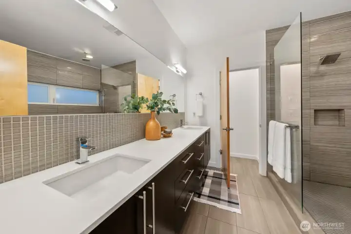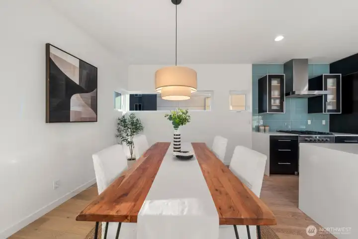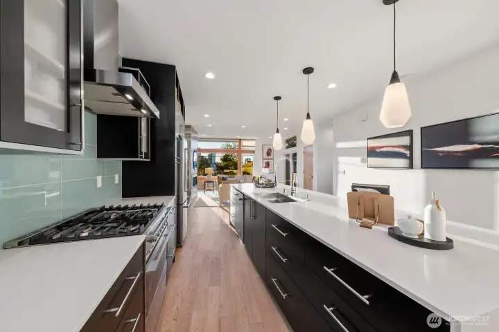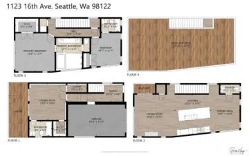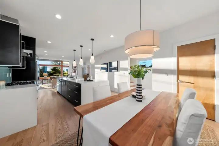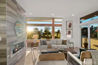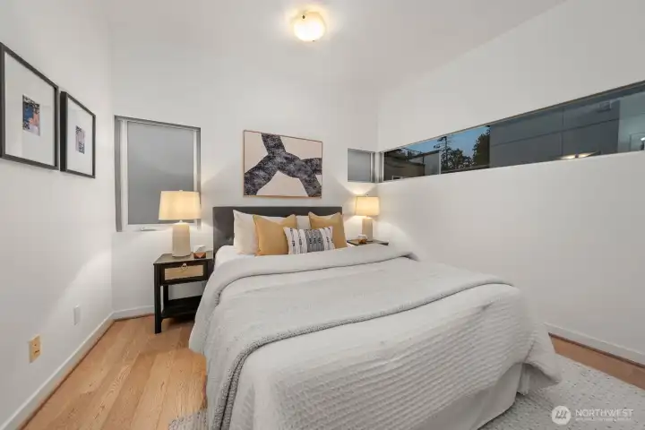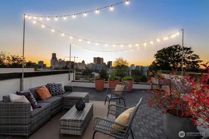 This modern, architecturally distinct stand-alone home has more than you thought you could hope for. Each space is bright and expansive. Unobstructed western views of the twinkling skyline and Olympics through walls of windows and from the breath taking roof deck. Every amenity is a delight. Each bedroom has an en-suite bath! Live in the heart of the city with remarkable spaces for entertaining. A first floor patio has easy gardens where every choice was well considered. The great room has living, kitchen, and dining that are connected yet distinct. The kitchen has recent premium appliances and a heart-of-the-home grand island. A new heat pump with AC gives year-round comfort. An attached garage, a walk score of 95, this is your happy home!