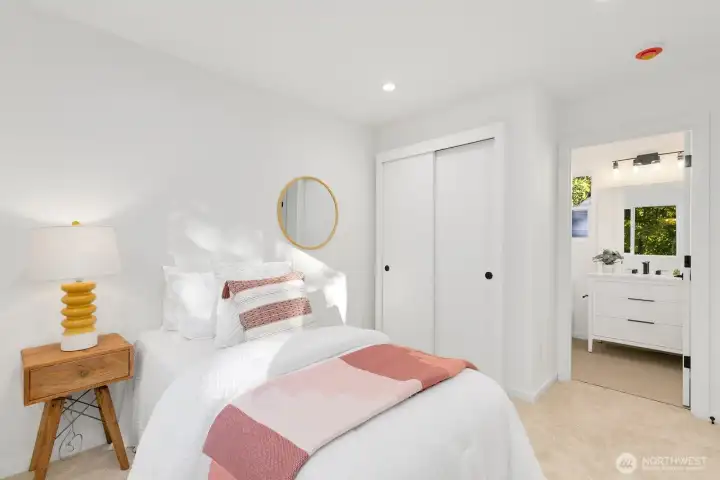 Newly constructed, modern, stand-alone house, just shy of 1000 sq ft, with 2 bedrooms, 2.5 baths, and a private back yard that backs up to the West Seattle Golf Course. A deck could easily be added to extend your living space outdoors. Everything is brand new, including designer finishes plus a dedicated off-street parking space. These homes rarely have this much privacy and yard space. Come see for yourself! The park and community center across the street along with proximity to downtown, make this one a commuter's dream on one of the best streets in the neighborhood. Don't miss your chance to call it home!