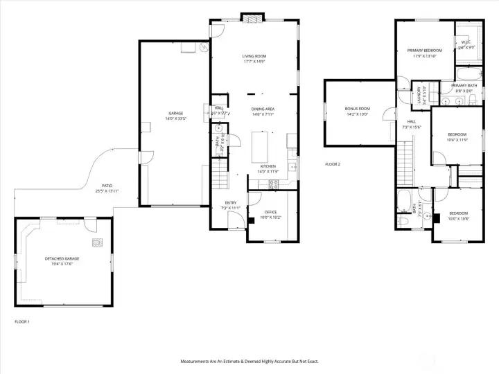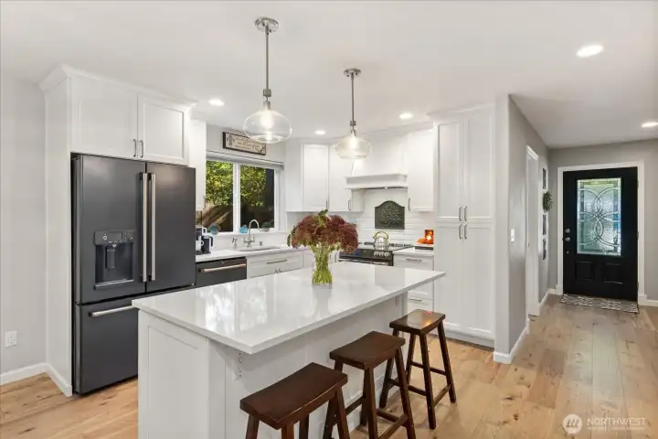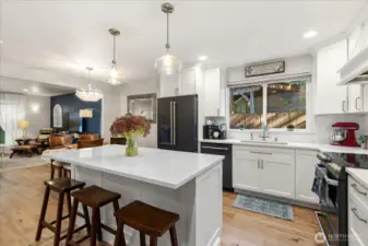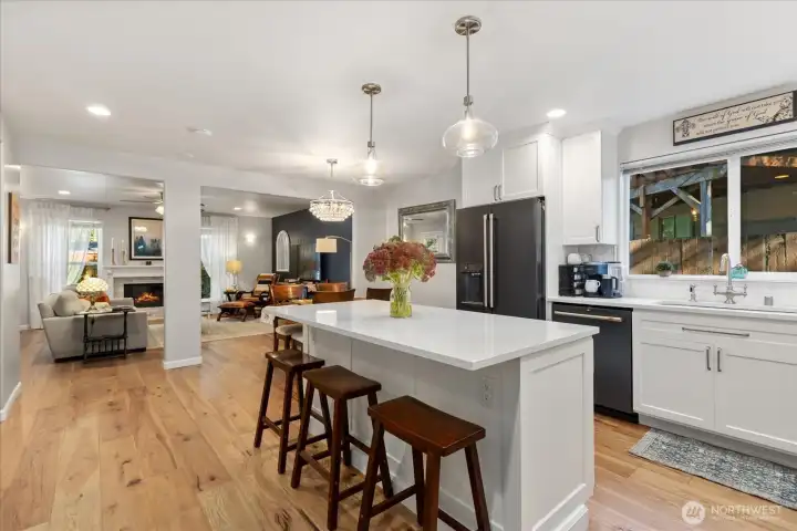 Absolutely charming Gold Bar home! Beautifully updated 3 bed/2.5 bath + main floor office & upper bonus room. Engineered hardwood throughout main. Gleaming kitchen boasts slab quartz counters, GE café black SS appliances & soft close drawers. Great rm concept- flows to generous dining space, into cozy living area w/gas fireplace. Upstairs find 3 beds, full hall bath & primary suite featuring gorgeous maple wainscoting, vaulted ceilings, walk-in closet & ensuite full bath w/dual sinks. 2 car tandem garage + detached shop w/heat, 200 amp service & workbench. Delightful fully fenced backyard to relax or entertain, raised garden boxes, fire pit + shed. New heat pump & newer roof w/warranty. Community Creek access! Gateway to recreation! Home!
