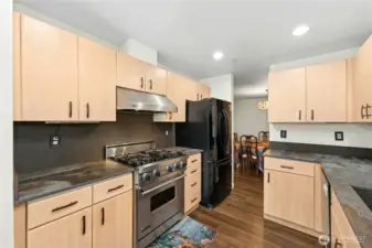 This bright and spacious 3-bed, 1.75-bath condo offers 1,676 sq ft of beautifully maintained living space. Vaulted ceilings with skylights and a cozy, double sided, gas fireplace create a warm, inviting living room. Sliders open to a private deck with peaceful fountain and golf course views. The sleek kitchen provides abundant cabinetry, and the dining area allows for formal dining. A versatile flex space off the kitchen can be used for an office or family room or informal dining . The primary suite features a dual-vanity ensuite and large walk-in closet. This desirable second-floor unit includes a welcoming front deck, 2-car garage with interior stairs, and guest parking. Convenient NE Tacoma location near I-5, parks, and local amenities.