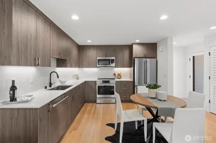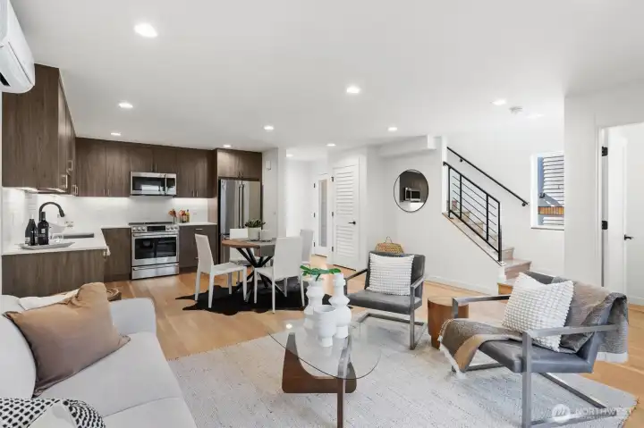 Crafted by Pivotal Homes, this standalone Capitol Hill residence brings modern design and soulful warmth to Capitol Hill. White oak floors sweep through open, light-filled spaces designed for connection and calm. The kitchen, rich with premium finishes, opens to a private patio that invites quiet mornings or lively nights with friends. Upstairs, a tranquil primary suite with a private deck offers the perfect retreat, while a spacious secondary bedroom and upper laundry add livability. EV-ready parking and thoughtful details throughout make this a home designed to be lived in beautifully—just moments from Lake Union’s waterfront parks, dining, and recreation, with effortless access to I-5 and 520 for an easy citywide commute.