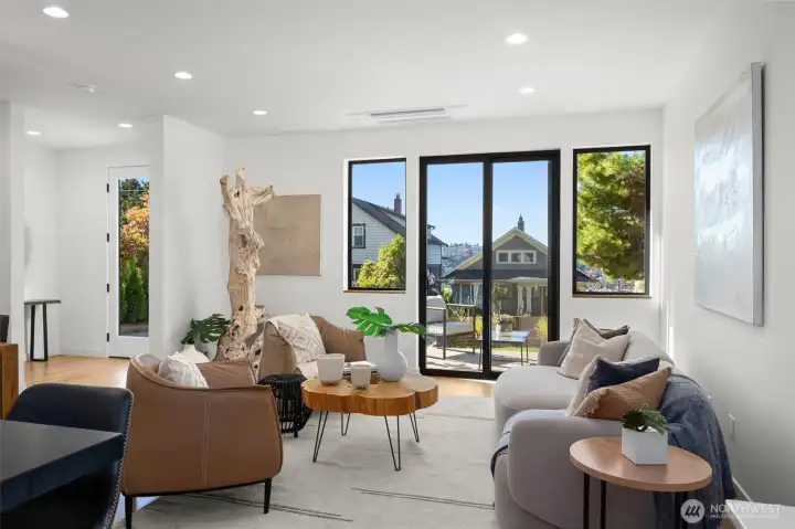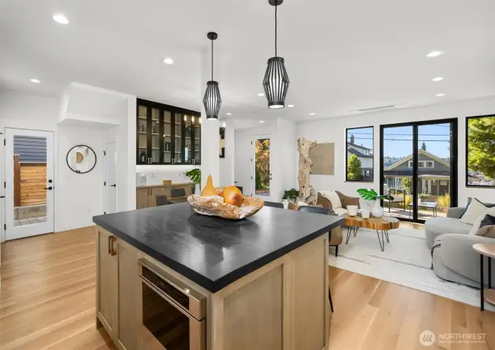 Live beautifully in this new North Capitol Hill residence by Pivotal Homes, featured in Architectural Digest. Every detail tells a story, from white oak floors & architectural lighting to walls of glass that fill the home w/ warmth & light. The chef’s kitchen shines at the heart of the home w/ premium appliances, a waterfall island, & a formal dining room w/ custom built-in cabinetry, perfect for gathering & entertaining. Glass doors open to a private patio made for long summer dinners & fireside evenings. Upstairs, the primary suite offers a spa-worthy bath & a covered terrace w/ built-in heaters & sweeping views of Lake Union and Gas Works Park. A view-filled office, 2 additional bdrms & private parking complete this modern urban retreat.