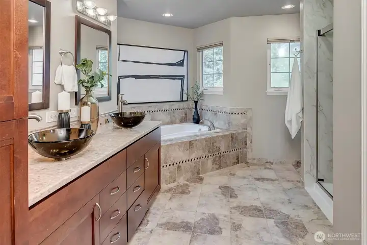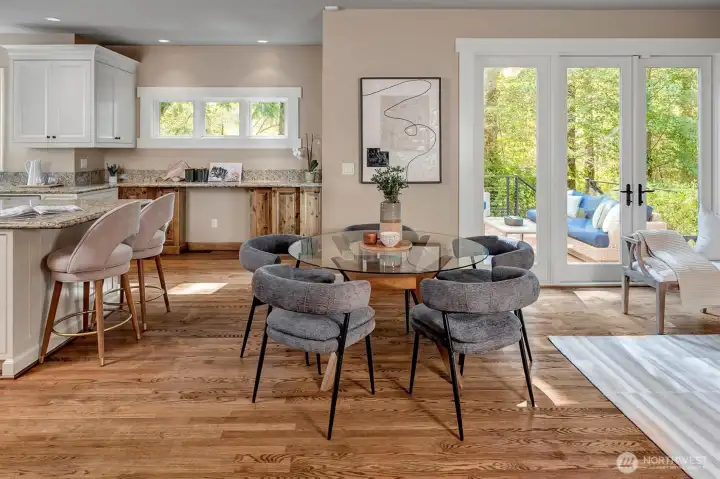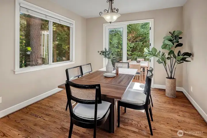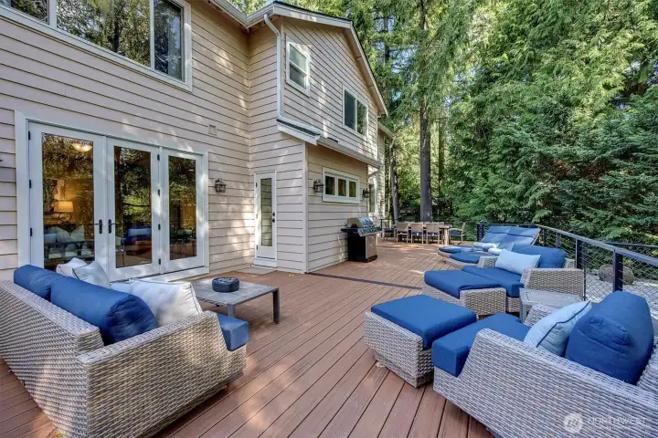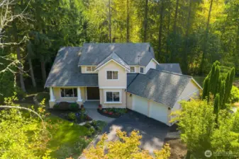 Stately and inviting, this Sammamish home blends quality finishes, privacy, and comfort in one high-end retreat. At its heart, a grand chef’s kitchen, two dining areas, and a bonus room with cozy fireplace flow seamlessly together, while a separate living room and den add flexibility. Built-ins and hardwoods grace the main floor, with new carpet upstairs leading to a spacious primary suite with spa-like bath and soaking tub. Outdoors, enjoy true Northwest living on a rare 3/4 acre private lot with a huge 700-sq-ft deck, lush greenery, and a flower-lined driveway that says “welcome home”. A huge nearly 600-sq-ft garage, modern updates, complete this quiet oasis close to parks, amenities, and award-winning Issaquah schools.