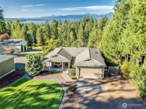 Enjoy stunning Olympic Mountain views from this beautiful 4-bedroom home featuring a main floor primary suite and multiple living spaces designed for comfort and function. The great room concept main floor opens to a composite view deckâperfect for relaxing or watching sunsets. A covered front deck welcomes guests, additional bedroom on main floor, heat pump for year round comfort and massive storage room offers added convenience. Ideally located within the Central Kitsap School District and just minutes to Bangor, St. Michael Medical Center, and downtown Silverdale retail and dining. Almost an acre of cleared property ready for your vision, including additional vehicle access on west boundary.