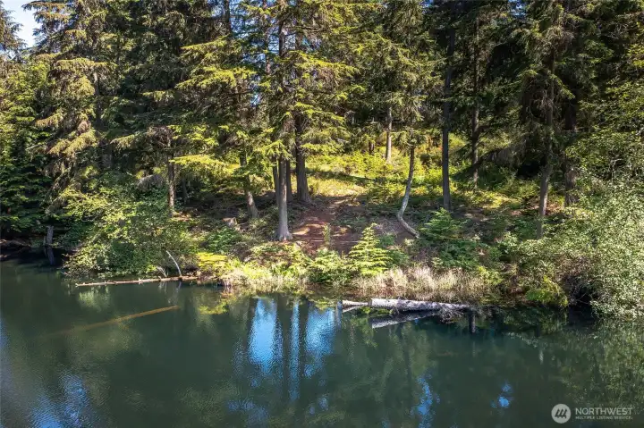 Tranquil lakeside Lot 5 is privately set near Girls' Island, offering beautiful views of Eagle Lake & Mt. Pickett. A private driveway leads to an enchanting, mossy building area centered in a 100' building circle. Property includes Atticus Design 2-bdrm concept plans w/ 3-D renderings, renewed 3bdrm septic design, topographic survey, 2025 Critical Areas reports—saving significant planning time & streamlining a path to your lakeside dream home. A haven for birdwatchers & hikers w/ fishing year-round. Temporary camping allowed w/ laundry & showers at the clubhouse. Enjoy 290+ acres of trails, a pristine 17-acre lake, ocean access, clubhouse, garden, playfield & more. Full-time caretaker; seller financing possible.Appointment required to tour.