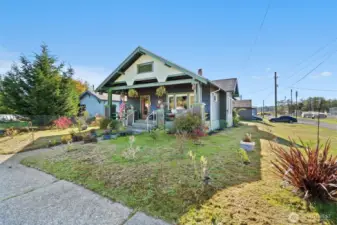 Charming, well-maintained single-story home on a spacious corner lot! This 2-bedroom, 1-bath home features beautiful original craftsmanship throughout. With central A/C and forced air heat this home creates a cozy atmosphere where you can be comfortable all the time. A large, covered front porch welcomes you into a bright, airy interior filled with natural light from oversized windows. The kitchen offers plenty of cabinet space and a cozy dining area. A generous utility room with built-ins adds convenience, while the easily accessible attic provides excellent storage or potential for additional living space. Fresh exterior paint adds great curb appeal. Detached garage included.