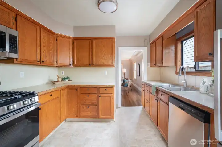 Charming turn-key Craftsman! Walk into coved ceilings and the Original hardwood floors that were just refinished. Kitchen features a brand new Stainless Steel appliance package w/ Gas stove and a roomy dining area looking over the large backyard. Brand New furnace and Hot water heater! Spacious first floor bedrooms have New carpet and fresh paint. Bright full-size bath features a new vanity, tub surround, flooring and paint. Two large bedrooms on 2nd floor w/ tons of storage and closet space. Bonus 832 sq ft basement for your imagination! Large backyard with alley access and a shed for your all your gardening tools. Easy access to shopping, freeways, and public transit. This one has it all!