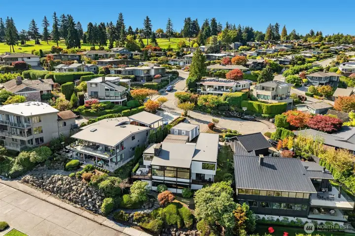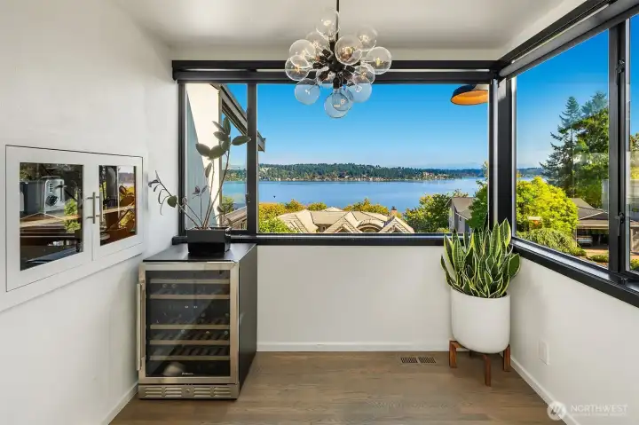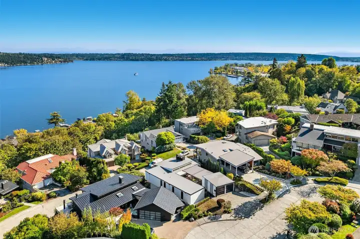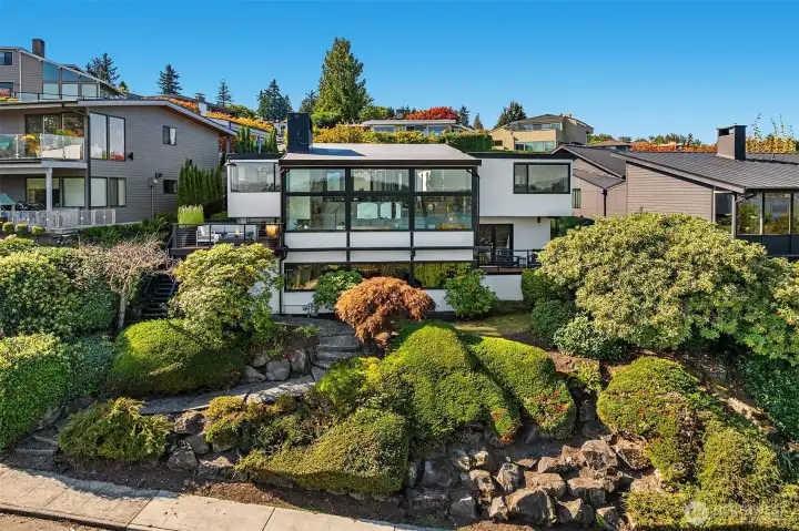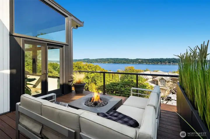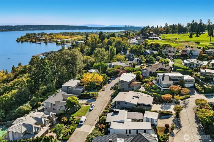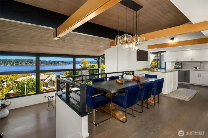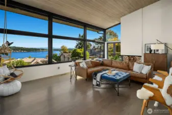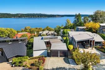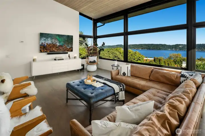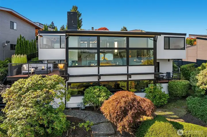 Architecturally striking mid-century home in the coveted Inverness, showcasing panoramic views of Lk. WA and the Cascades. Vaulted ceilings and nearly floor-to-ceiling windows maximize natural light and frame the stunning views. Stylish upgrades w/ view decks and a private courtyard w/ a retractable pergola, built-in heaters and lighting - ideal for year-round entertaining. This 4-bed, 2.75-bath residence has a large 2 car garage w/ EV charging, 2 fireplaces, A/C, view protection covenants, golf cart access to Sand Point C.C., and underground power lines. Enjoy close proximity to the Burke-Gilman trail, premier hospitals, top rated schools, and all that NE Seattle has to offer. A timeless home with exceptional design and unparalleled views.