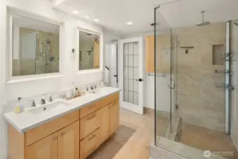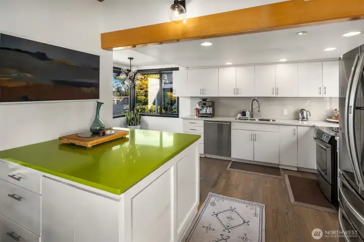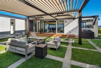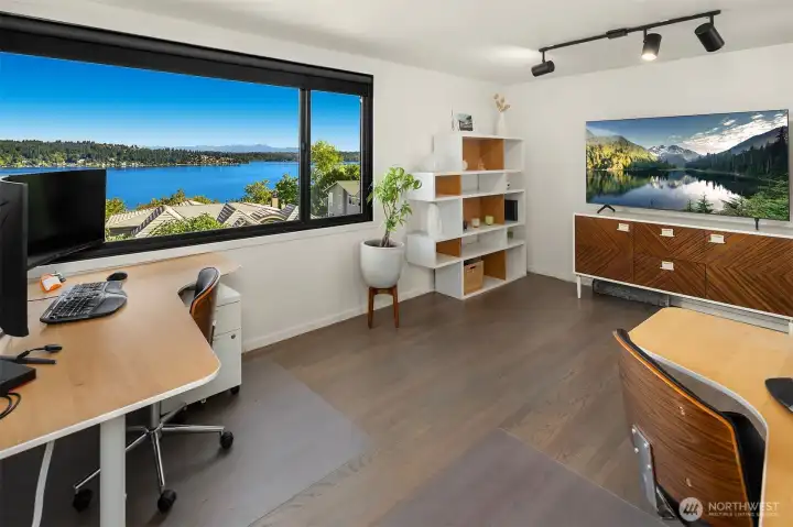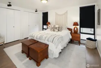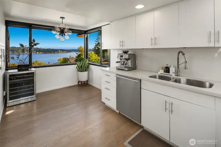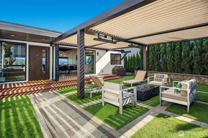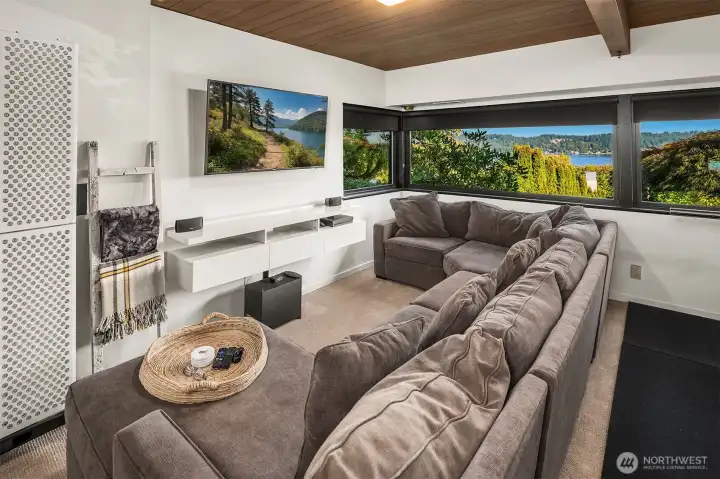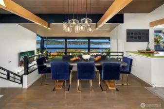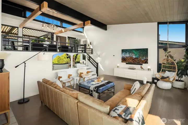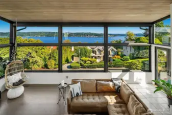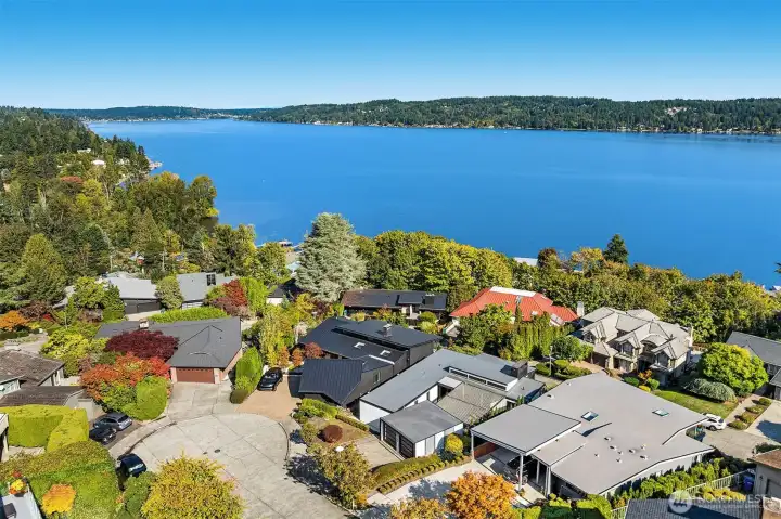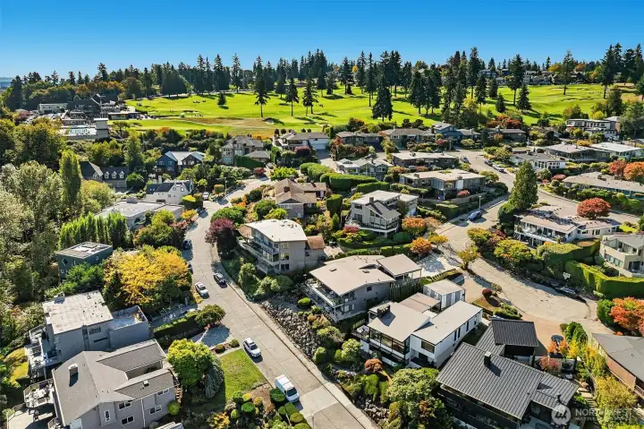Architecturally striking mid-century home in the coveted Inverness, showcasing panoramic views of Lk. WA and the Cascades. Vaulted ceilings and nearly floor-to-ceiling windows maximize natural light and frame the stunning views. Stylish upgrades w/ view decks and a private courtyard w/ a retractable pergola, built-in heaters and lighting - ideal for year-round entertaining. This 4-bed, 2.75-bath residence has a large 2 car garage w/ EV charging, 2 fireplaces, A/C, view protection covenants, golf cart access to Sand Point C.C., and underground power lines. Enjoy close proximity to the Burke-Gilman trail, premier hospitals, top rated schools, and all that NE Seattle has to offer. A timeless home with exceptional design and unparalleled views.