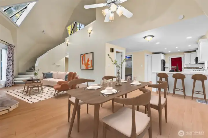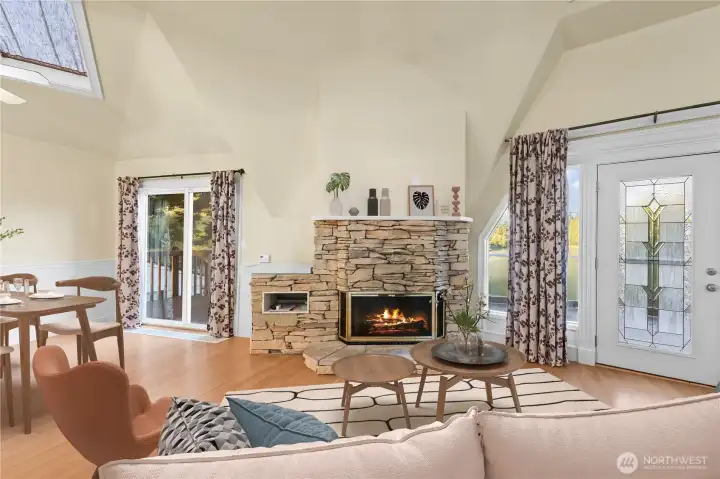 Featuring 148' of lakefront bliss with gazebo and dock, here in the sought after community of Sylvia Lake you will find this over 2600 Sq ft home that lives big with an open concept and has so much to offer! With .7 acres in total and three parcels offering level serene lakefront, this residence is boasting architectural flair with intentional design including tons of windows and skylights capturing sunlight and a wraparound deck with sweeping lake views. Enjoy 3 bedrooms, 2 fireplaces, an office, full bath on each level, an extra-deep garage with shop and dedicated guest parking! This prime close-in location near shopping, schools, and parks features an additional community beach, dock and picnic area. Immaculately maintained w/ new roof.