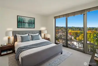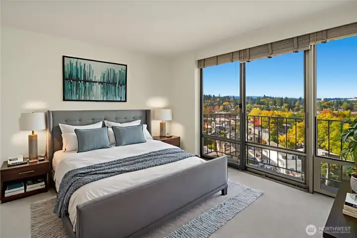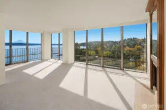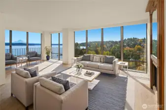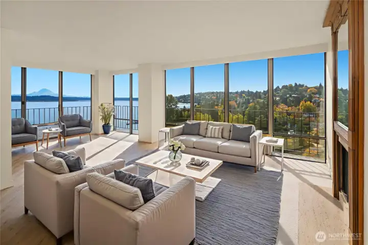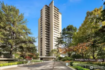 Welcome to Washington Park Towers! This beautifully remodeled unit features stunning views of Lake Washington and Mt. Rainier. The open floor plan flows seamlessly. Living room features a fireplace and wall of windows to the view. Remodeled kitchen with vertical grain oak cabinetry, honed slab granite counters and top of the line appliances. The primary bedroom with walk in closet and a full travertine bath enjoys a sliding door to the private balcony with gorgeous territorial views including Husky stadium. Wonderful amenities include 24 hour concierge, work out room, pool, rooftop deck and day dock.