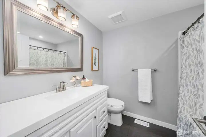 WELCOME HOME! This 3BD Gig Harbor home has it all! Vaulted ceilings, loads of windows, engineered hardwood, granite countertops, stainless appliances, induction cooktop, and heat pump on a prime corner lot close to schools, shopping, and more! The open floor plan connects the kitchen, dining, and living rooms into one great room. Upstairs features the primary suite with en-suite bath, two additional bedrooms, and another full bath. The lower level includes two bonus rooms, a half bath, and laundry/utility room. The attached garage has room for storage or hobbies and parking for 2 cars. Outside you have a large deck, RV parking with hookup, mature landscaping, and a fenced side yard. This home truly has it all, hurry it won't last long.