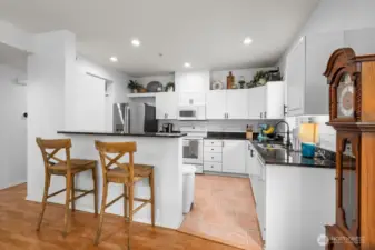 Beautiful corner-unit townhouse in sought-after Bayview at The Lakes! This light-filled home features 9 foot ceilings throughout, a spacious living room equipped with gas fireplace, a bright kitchen with granite counters and tile backsplash, open dining area, and a expansive balcony. The primary suite offers a walk-in closet and dual-sink bathroom. Two well appointed guest bedrooms. The two-car garage boasts epoxy floors, a utility sink, and bonus room with patio access for additional storage or whatever your imagination brings! Conveniently located near highways, light rail, parks, and shopping— don’t miss this incredible home!