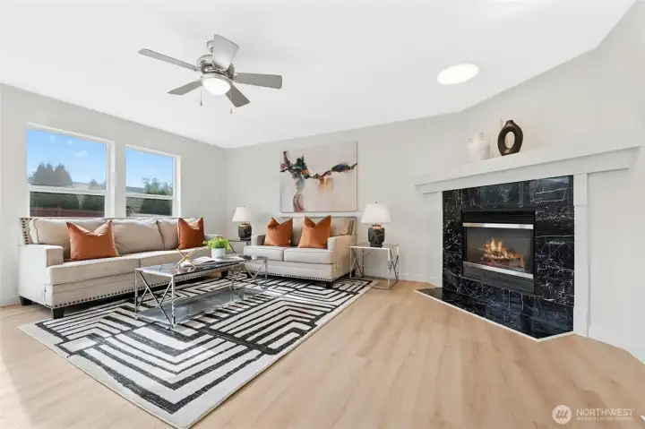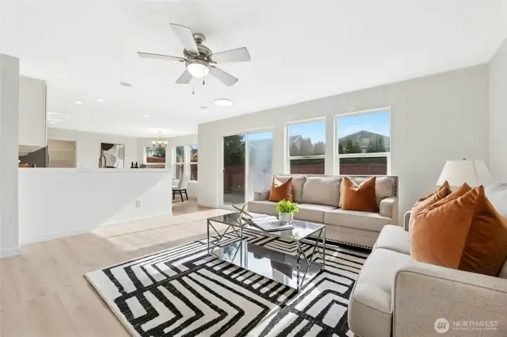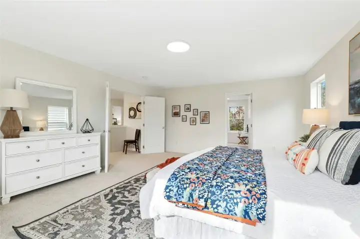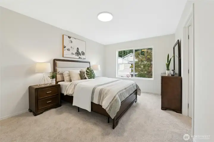 Beautifully upgraded 2,500+ sq. ft. home in desirable Redmond Ridge;features 3 bedrooms, 2.5 bath & a spacious loft filled with natural light. The well-sized bedrooms each include a walk-in closet.The open-concept living area boasts a cozy fireplace and a modern kitchen with stainless steel appliances,new cabinetry, & a bright breakfast nook.The luxurious primary suite includes a spa-style bath with a jetted tub & an oversized walk-in closet.Recent updates include new paint, carpet, LVP flooring, lighting, & a new A/C system, newer appliances, and washer/dryer. The roof is in excellent condition.Enjoy the large patio & proximity to parks, scenic trails, and award-winning Lake Washington schools.Move-in ready and perfect for modern living!