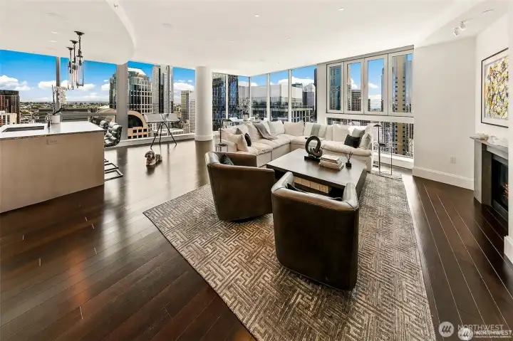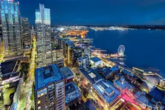 PENTHOUSE perfection-Perched atop the southeast corner of one of Seattle’s most coveted buildings, this exceptional two-level penthouse offers a rare blend of uncompromising luxury, privacy, and awe-inspiring views. Wrapped with floor to ceiling windows this home is flooded with natural light. A sky-high sanctuary capturing the very essence of PNW living, views stretch across the Sound to the Olympics, including views of the Seattle Great Wheel. Timeless elevated finishes through out the home. Arguably the best PRIVATE rooftop deck in the city, includes kitchenette, beverage center, kegerator, Jacuzzi,outdoor TV & speakers, gas fireplace, built-in Wolf BBQ. World class building & location.PIKE PLACE Market is you next door neighbor-2parking