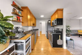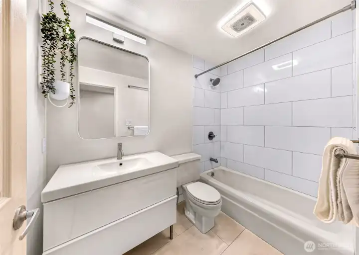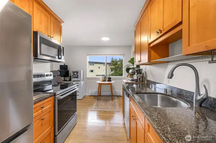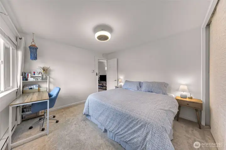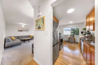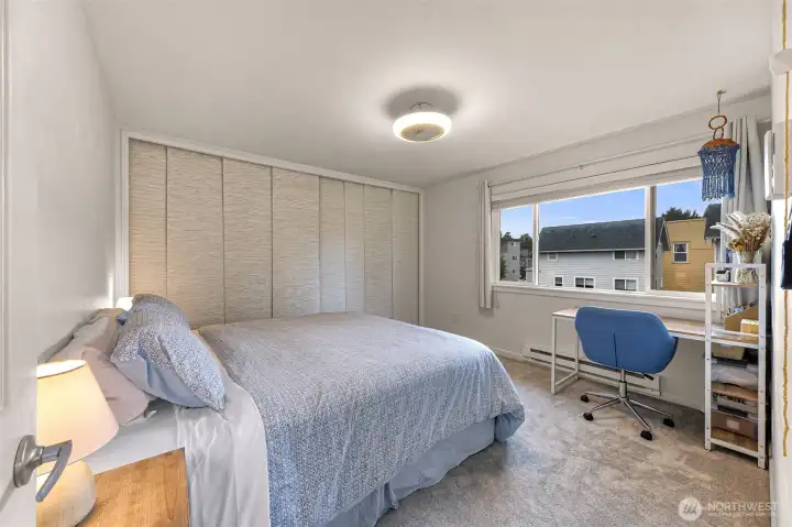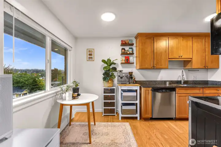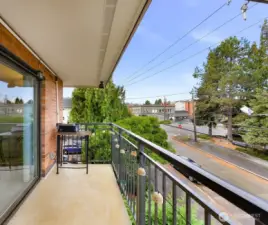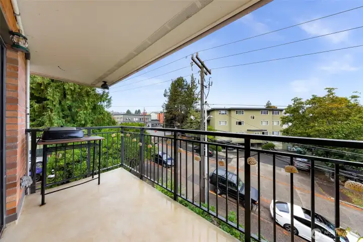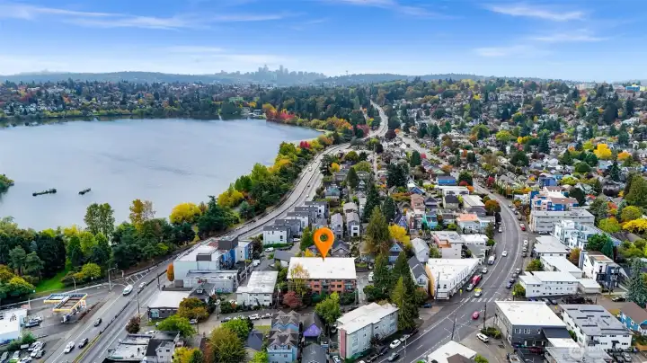 Welcome to Phinney Ridge! This quiet 1-bedroom, 1-bath top-floor end unit just steps from Green Lake offers privacy, natural light, and thoughtful updates throughout. Features include LED lighting, newer carpet, blinds, and closets, a stylish kitchen with stainless-steel appliances, a modern bath, dedicated off-street parking, private storage, and bike storage. The open layout extends to a spacious living room and large balcony with panoramic neighborhood views. Building remodels completed in 2018 with new decks, railings, windows, roof, and plumbing. With no rental cap, easy access to local restaurants, shops, PCC Market, and express transit to downtown, this unit is an excellent investment opportunity or perfect for your next home!