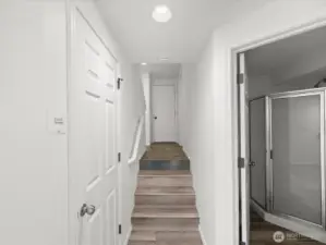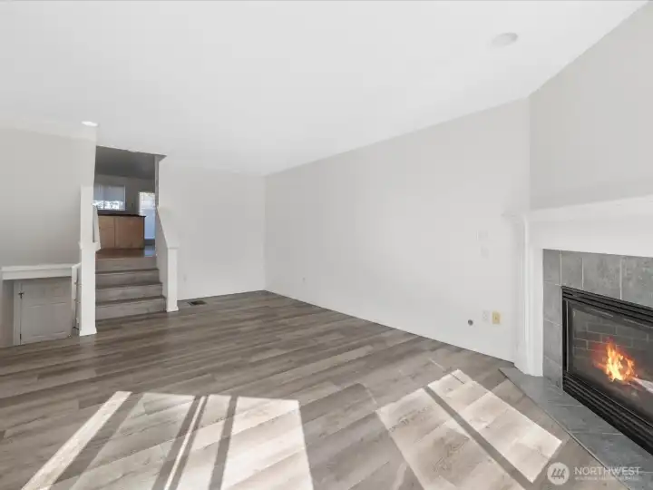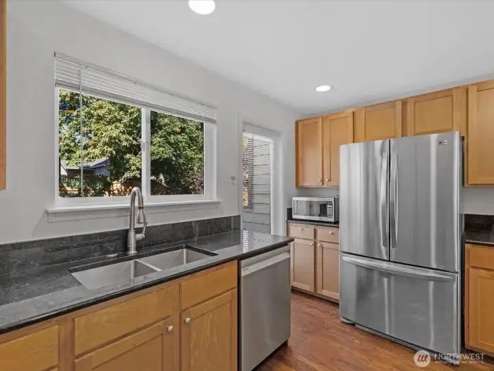 Freshly remodeled multi-level townhome with a view of Bitter Lake! Hardwood floors. Granite slab countertops in kitchen, gas range, newer fridge, dishwasher and garbage disposal. Efficient radiant floor heating, gas fireplace, security system, new flooring and new paint throughout! Upper level has 2 large bedrooms, including primary suite with vaulted ceiling. First floor bedroom has its own 3/4 bath. 1-car attached garage with storage space, additional off-street parking for 2nd car. Decks off of living room and kitchen with storage closet. No homeowner dues! Fast access to I-5, minutes to Seattle, the Eastside, Everett. Brand new wood fence and gate just installed!
