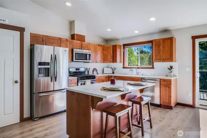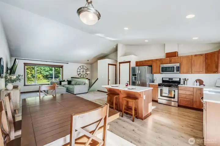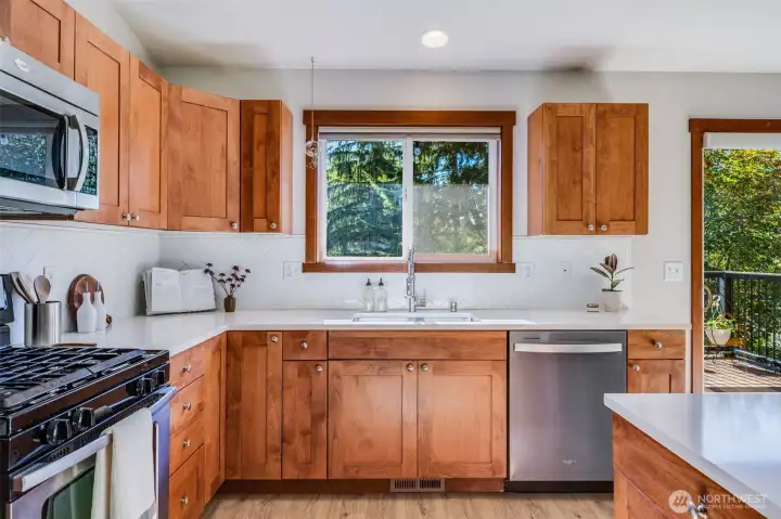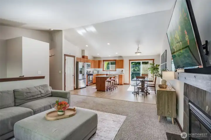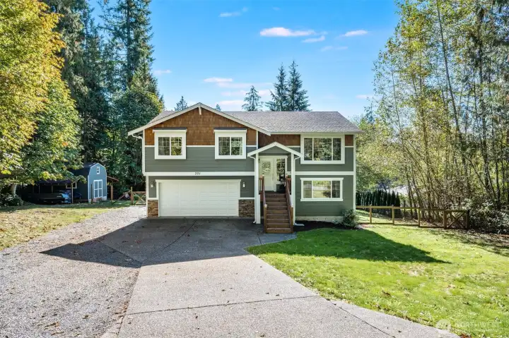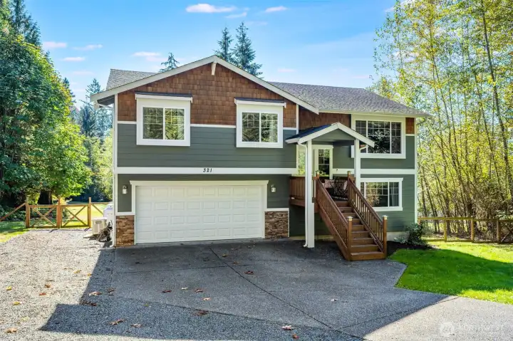 Beautifully updated and meticulously cared for, this home sits on 1.75 private acres designed for comfort, entertaining, and adventure. Enjoy upper and lower 40’x10’ Trex decks, a patio and fire pit area, privacy trees, fruit trees, and 0.5 acres of custom-built trails. Inside features 3 bedrooms plus an office/library, 2.75 baths, and a vaulted living room with a cozy fireplace. The kitchen shines with quartz counters, stainless steel appliances, a gas range, and a custom backsplash. Extras include a water purification system, generator, RV parking, and a lofted shed. A true oasis—welcoming, functional, and perfectly maintained.