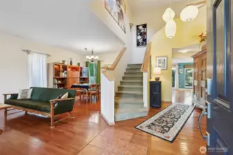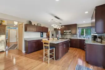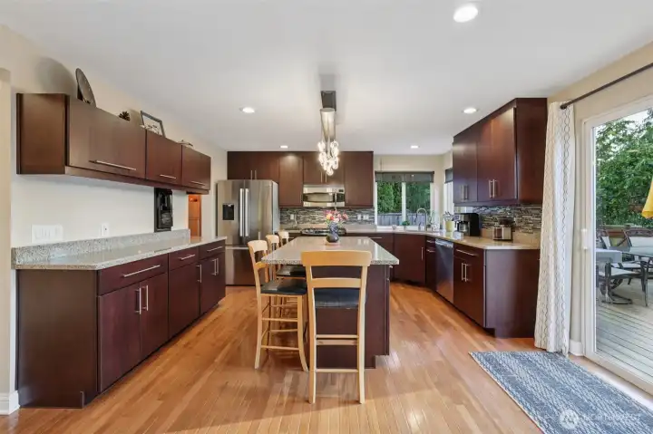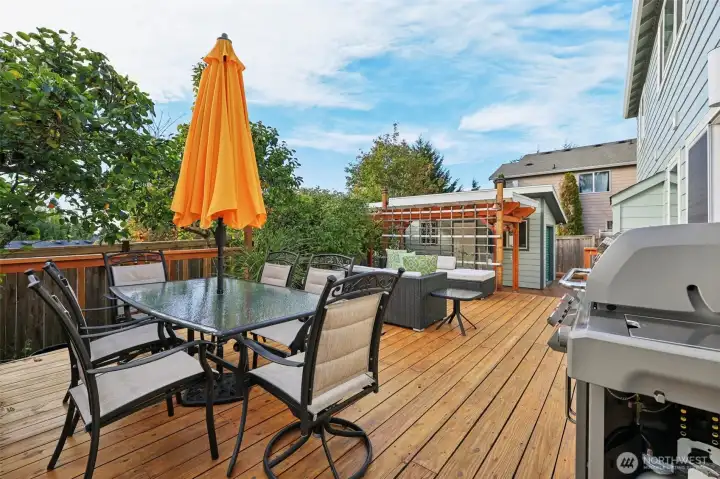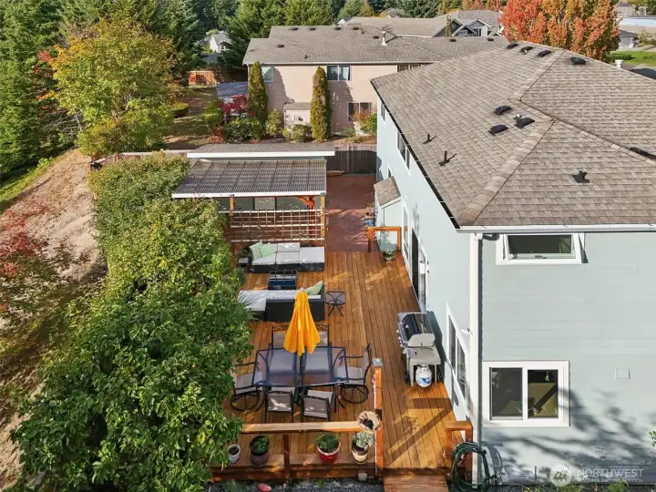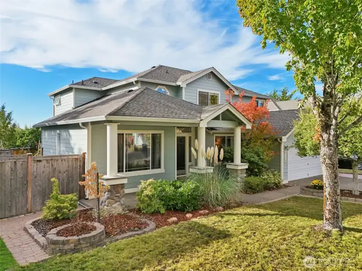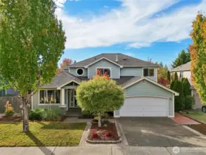 Welcome to luxury in sought-after Lakeland Hills! This impeccably maintained home welcomes you with soaring ceilings, elegant lighting, & rich hardwood floors throughout the main living areas. The gourmet kitchen features expansive quartz counters, high-end cabinetry, & modern appliances. A main-floor bedroom offers flexibility for guests or a home office. Upstairs, find 4 bedrooms, including a primary suite with Olympic Mt. views, a 5-piece bath w/ granite countertops, & a walk-in closet. The private outdoor retreat is stunning: fruit trees, a pergola-covered stamped concrete patio, & an outbuilding/shop with your own sauna! With newer windows & fresh exterior paint, this home blends luxury, comfort, & functionality perfectly. A must see!