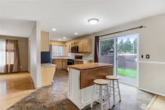 Discover the perfect blend of comfort, style, and space in this beautifully maintained home, ideally located in the heart of Yelm. The landscaped entry welcomes you into an inviting open floor plan with generous living and dining areas. The kitchen offers a walk-in pantry, corner sink, and dining nook—ideal for daily living or entertaining. The primary suite features vaulted ceilings and a private bath, while three additional bedrooms and a full bath complete the upstairs. Stay comfortable year-round with a heat pump and gas fireplace. Step outside to a fully fenced backyard with an extended patio—perfect for summer barbecues, playtime, or relaxing evenings. Close to schools, parks, entertainment and shopping. Easy commute to JBLM!