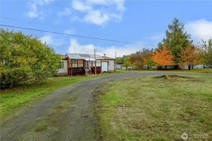 Conveniently located between Sequim and Port Angeles, this 3 bed, 2 bath home offers plenty of space to spread out and enjoy peaceful surroundings. The 1.1acre property features mature fruit trees, 2 Redd's Sheds for storage or hobbies, and a large back deck perfect for relaxing or entertaining. Inside, you’ll find comfortable living spaces and thoughtful accessibility features for ease of use. Enjoy the orchard with apple, pear, cherry, and plum trees. New septic installed in 2024, updated septic inspection, and 1 year old heat pump recently serviced for peace of mind.  With room to garden, play, or simply unwind, this home is full of potential and ready for your personal touch.
