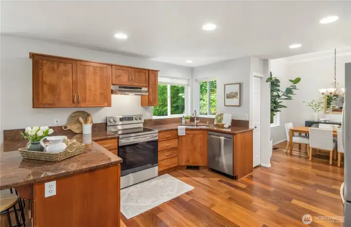 Woodinville’s Serene and Elegant Hideaway. Nestled down a private lane in a tranquil setting, this elegant home offers a perfect blend of privacy and sophistication. This classic 4 bedroom, plus den, 2.5 bath residence is set on an expansive, level, near-acre sanctuary amidst lush, picturesque landscapes. This home’s hallmark is its light-filled spaces and timeless design, showcasing enduring elegance and comfort. Situated in an ideal Woodinville locale, the property’s desirable location offers excellent proximity to the entire Eastside, making it a prime choice for those seeking convenience and tranquility. New carpet, AC and electric car charging