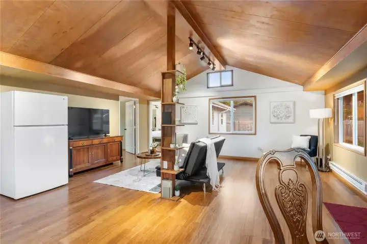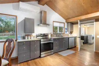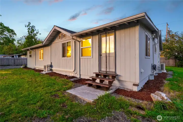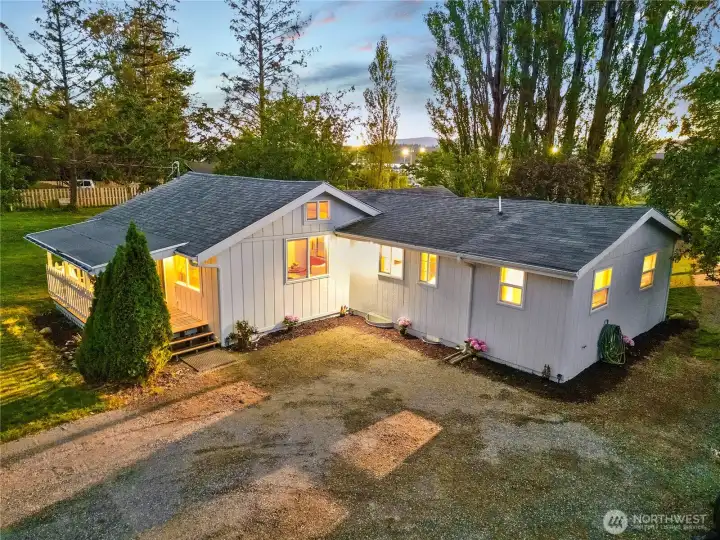 Situtated on just over half and acre, expirience privacy, and a refreshed/remodeled home close to the Lummi ferry. Just above 1200 square feet of interior space, this home utilizes every square inch. Vaulted ceilings, tastefully done with wood accents and flexible LED lighting. Home features granite countertops, with a new re-freshed kitchen, new appliances with open living space. Each room comes with its own mini-split AC system to perfect each tempature to your liking. Including one bathroom per bedroom with a larger full bath in the primary bedroom. Fully fenced lot, with your own two car detatched garage and extra storage sheds. Apple and pear trees on site, with a covered patio perfect for those nice warm days!