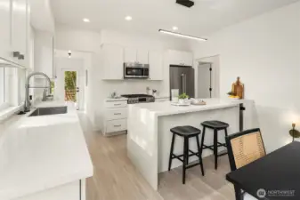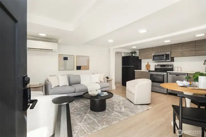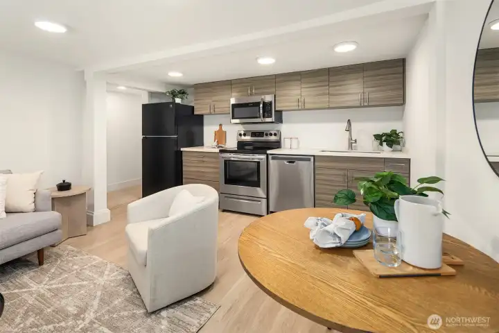 Beautifully reimagined Bryant home offering flexibility, charm & proven rental income! Fully remodeled top to bottom, this 5-bed, 2.75-bath gem lives large with two complete living spaces. The main home (3bed/1.75bath) features airy, open-concept living, designer kitchen, & serene primary suite w/deck access overlooking the private backyard. Downstairs, a 2bed/1bath ADU w/separate entry features full kitchen & laundry w/strong rental history, ideal for guests, multi-gen living, or investment near UW & Children’s. Enjoy new systems, timeless finishes, & effortless indoor-outdoor flow, from the welcoming front porch swing to the sun-soaked entertaining deck. A turnkey opportunity in one of NE Seattle’s most beloved neighborhoods!