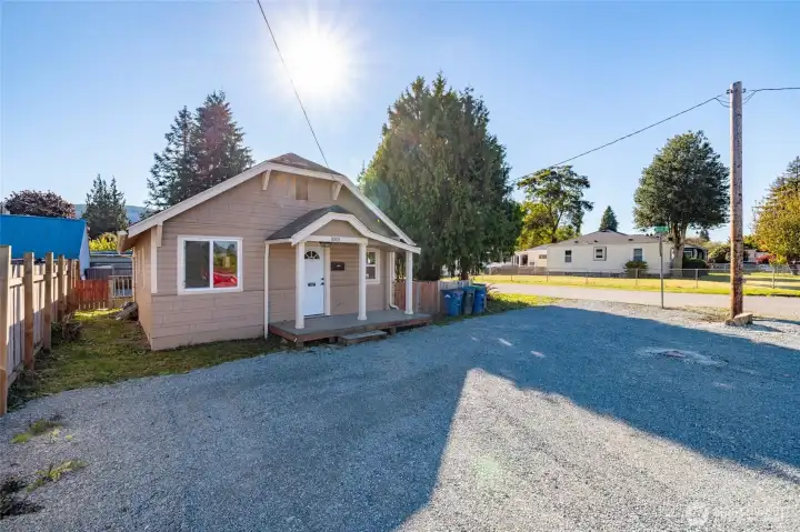 Cute remodeled 2 bedroom and 3/4 bath with shower Bungalow close to the heart of Sedro-Woolley on a large corner lot. All appliances stay! This move in ready home is fully fenced, alley access and room for plenty of parking out front. Gravel and concrete pads in the back for you to place your shed or play equipment and so much more room for gardening and entertaining.
