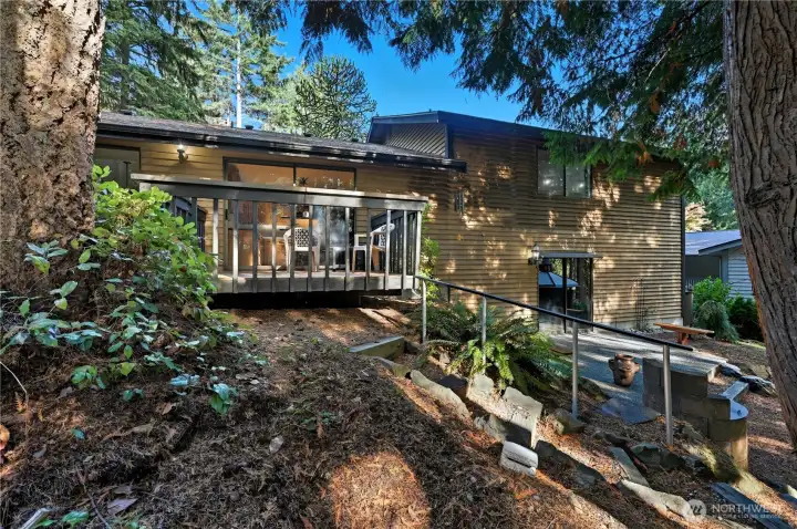 Set in Edmonds’ sought-after Picnic Point area, this 3-bed, 2.5-bath tri-level offers 1,980 sq ft on a 9,583-sq-ft lot backing to a greenbelt for ultimate privacy and no neighbors behind. Original throughout and ready for your vision, this solid home features a bright living room, formal dining area & spacious kitchen with a convenient eating nook and brand-new stove. Upstairs are the primary suite, two bedrooms & a full bath; the lower level adds a comfortable family room. A deck off the kitchen overlooks a park-like backyard with mature trees, an outbuilding, a small bridge & whimsical hobbit-style playhouse. The 2 car garage is finished with tiled flooring and a work area. Bring your ideas and make this Edmonds classic your own!