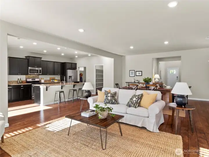 Welcome to this beautifully maintained 3-bedroom, 2.5-bath home offering over 2,700 sq ft of thoughtfully designed living space in NE Lacey’s Meridian Campus. The main level features a spacious open-concept layout that connects the living, dining, and kitchen areas with a large island—ideal for everyday living or entertaining. Upstairs includes all spacious bedrooms, an oversized laundry room, and a versatile bonus room perfect for an office, playroom, or media space. Fully fenced backyard with patio, 2-car garage, and close to parks, schools, Hawks Prairie shopping, and I-5.